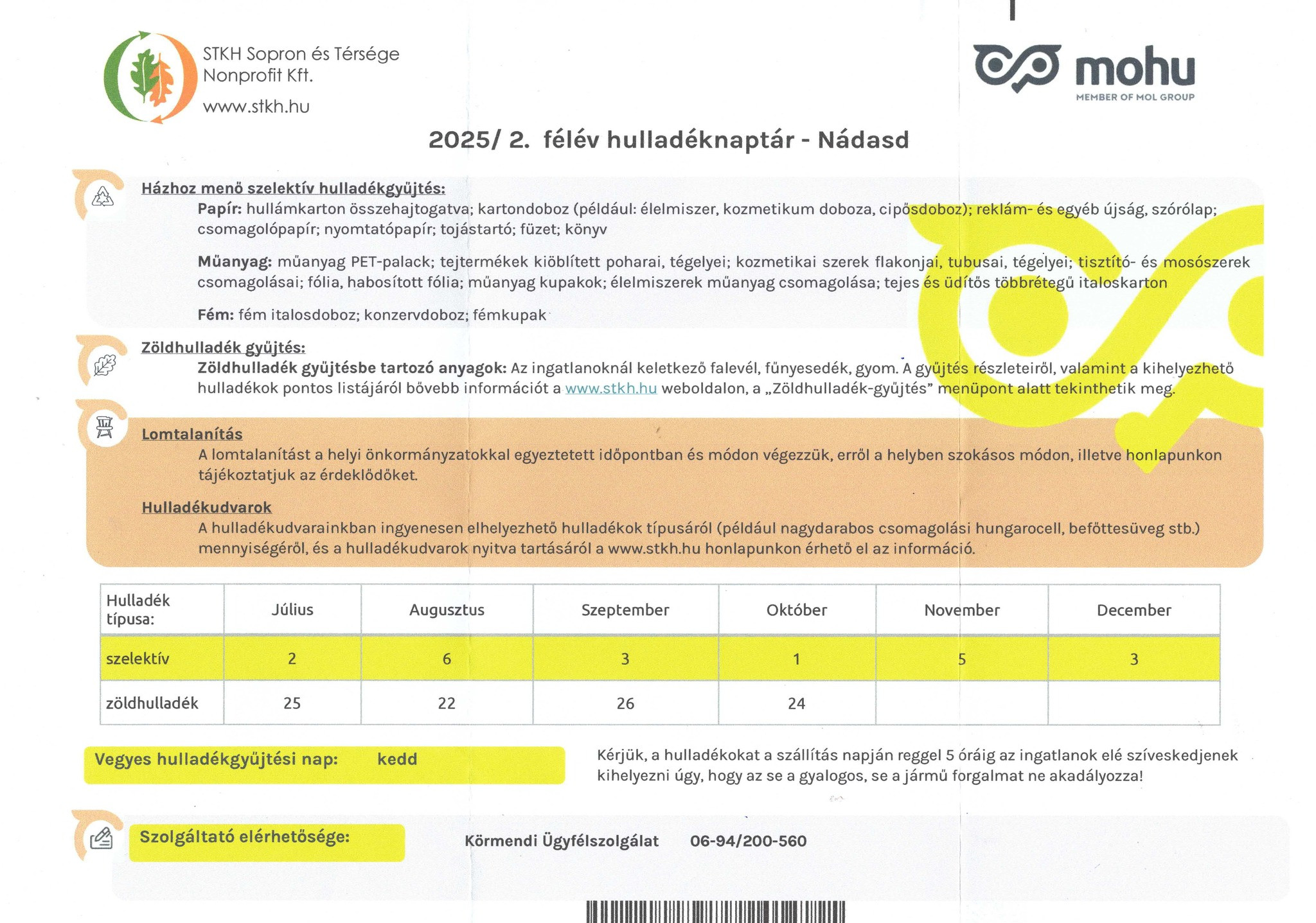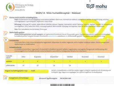 Hulladéknaptár 2025