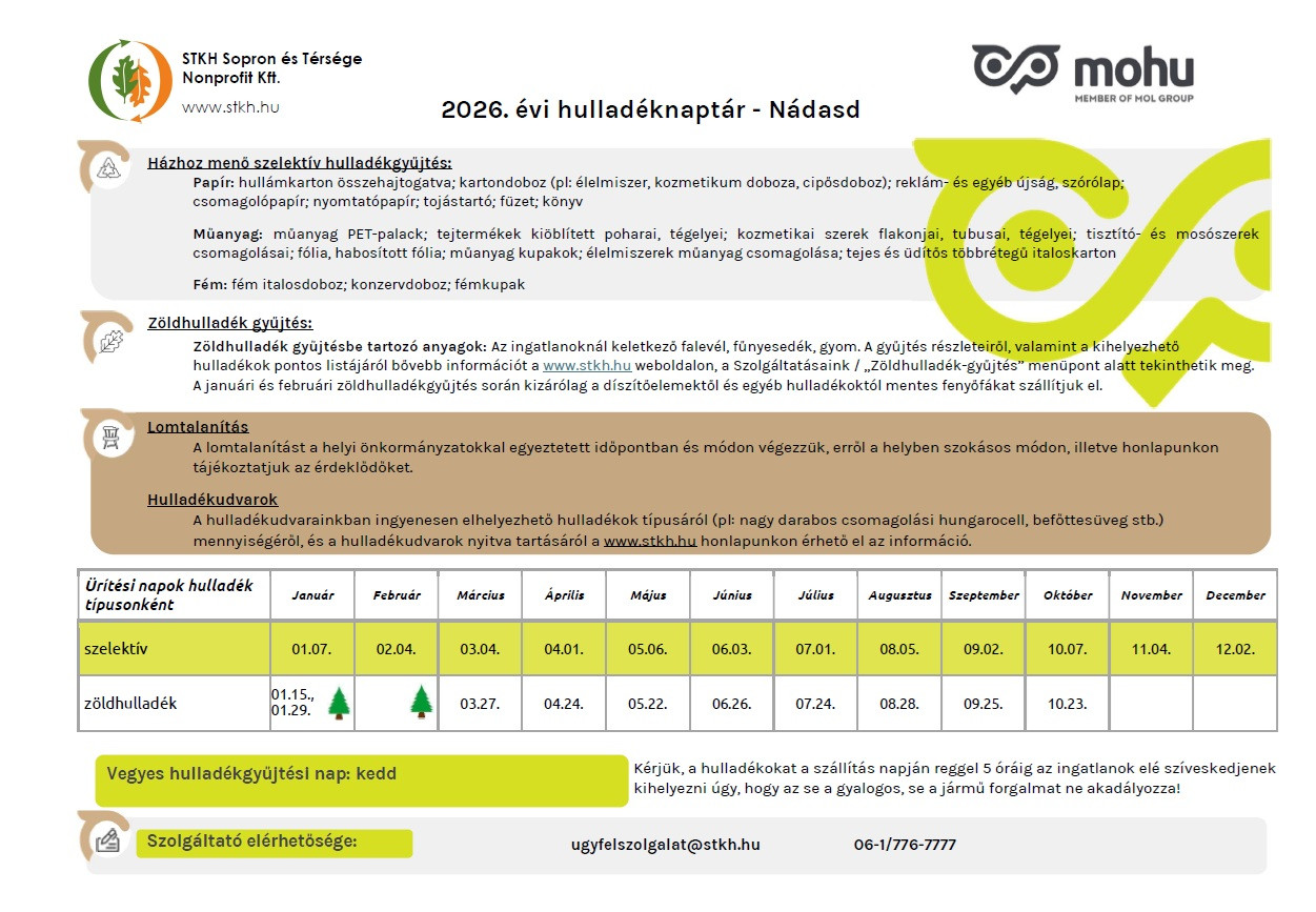 Hulladéknaptár 2026 I. félév